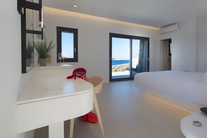 Set apart on the lower level of the villa property, the Sea View Guest House offers a deeply serene and immersive coastal retreat, with uninterrupted views across the Aegean Sea. Designed for guests seeking privacy and proximity to the water, this independent space opens onto its own garden and outdoor sitting area—an ideal setting for quiet mornings, sea air, and moments of reflection.