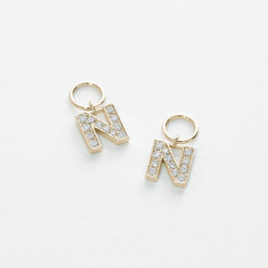 Diamond and Black Diamond Reversible Mini Huggie Earring Initial Charms (Single Charm)